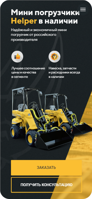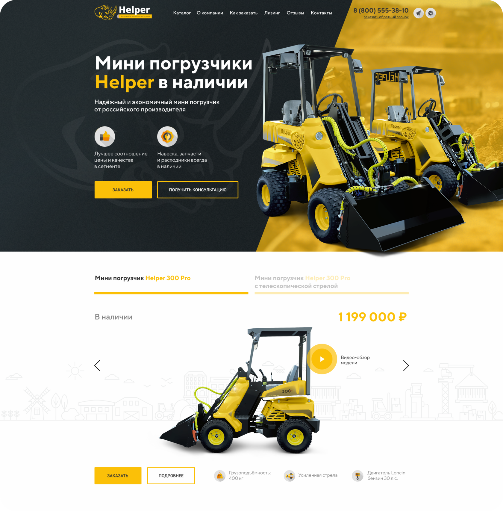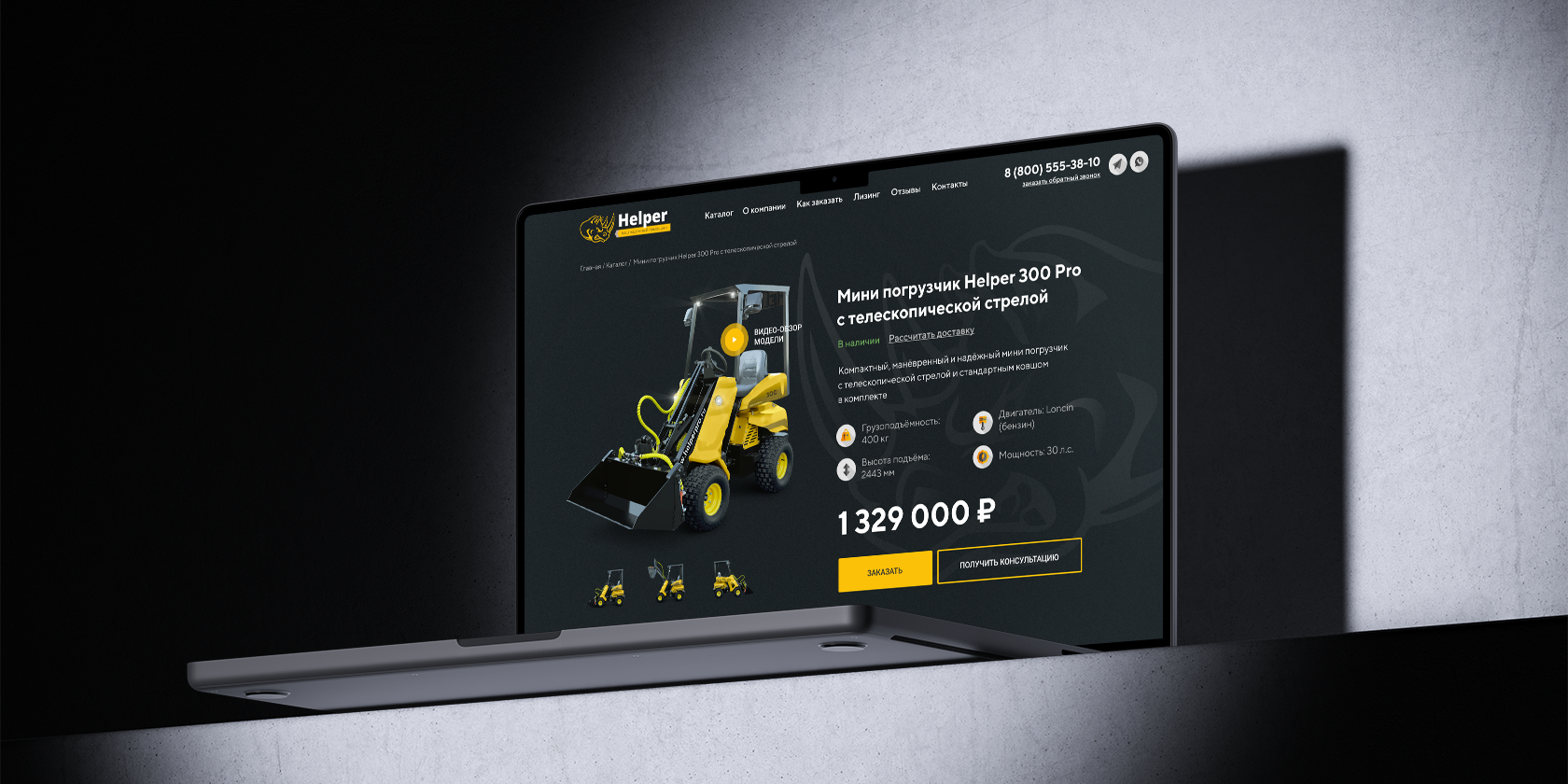 Компания Helper, специализирующаяся на производстве и продаже мини погрузчиков и навесного оборудования, решила разработать новый веб-сайт для привлечения клиентов и увеличения объема продаж. Целью проекта было создание современного, интуитивно понятного и привлекательного онлайн-ресурса, который представит продукцию Helper в наилучшем свете и поможет потенциальным клиентам легко найти и приобрести необходимый погрузчик.